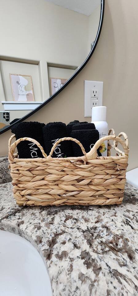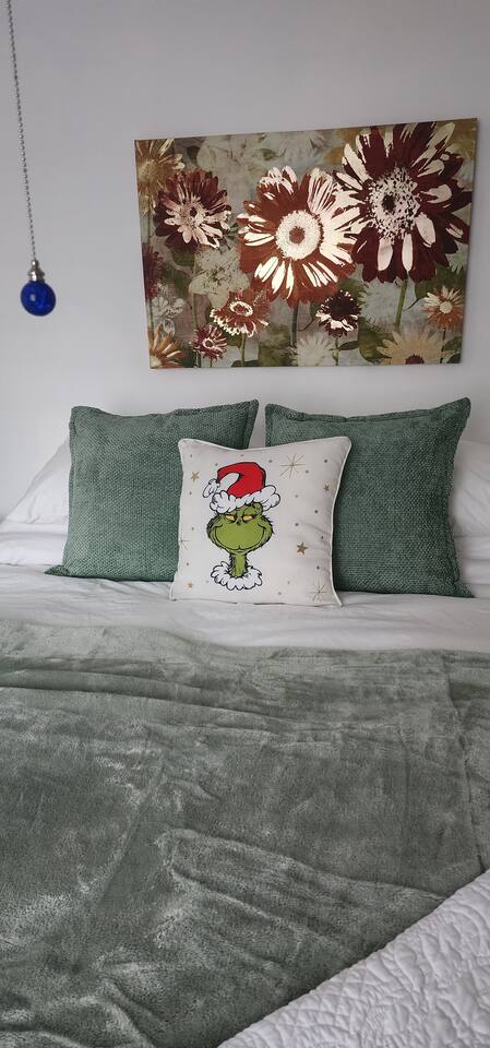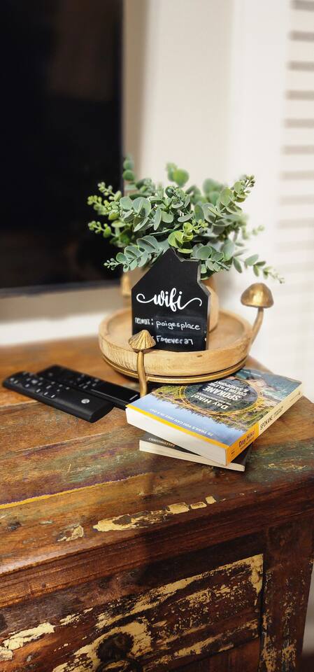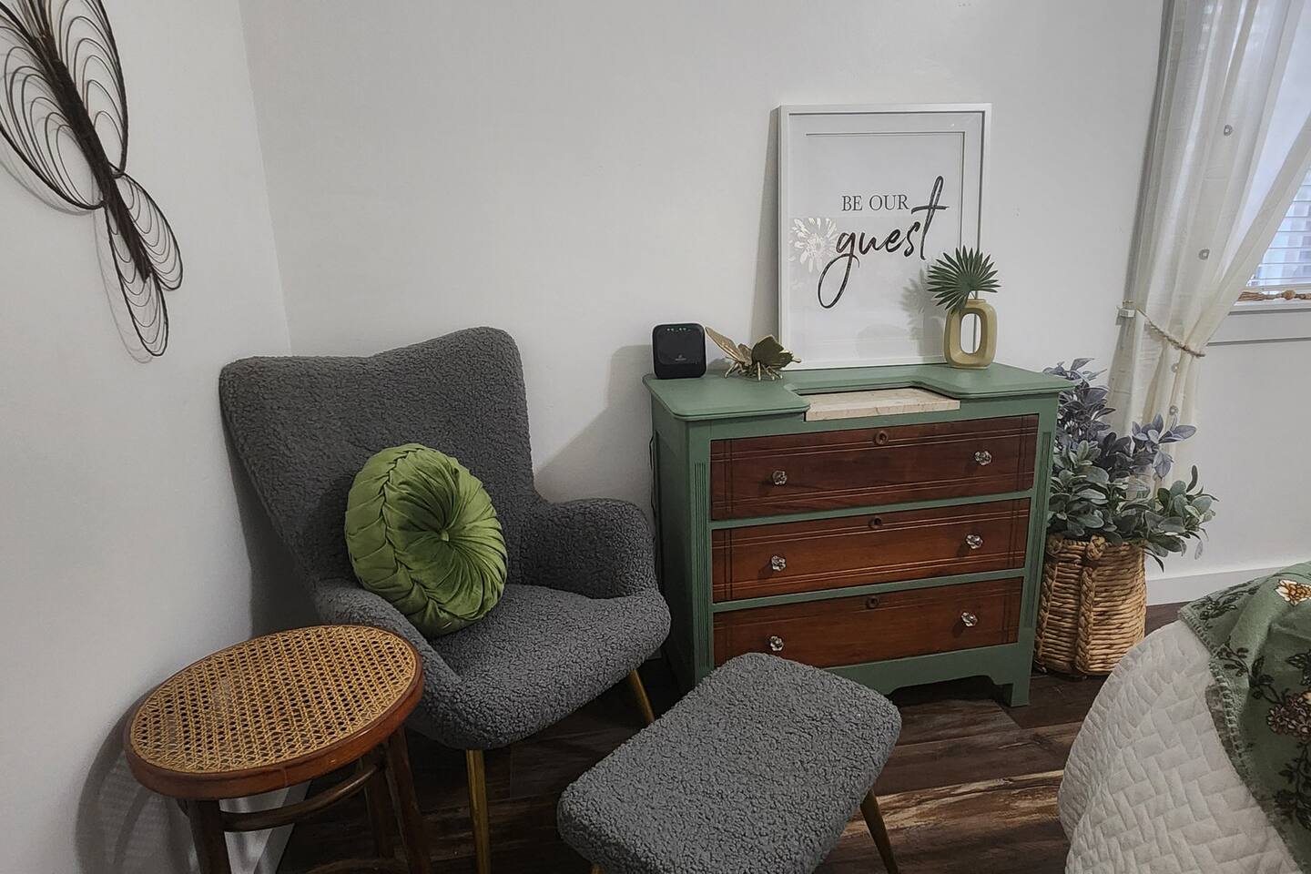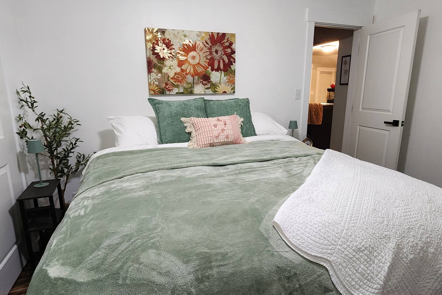 Complimentary gift basket upon arrival This adorable updated 1905 home is set back from the street on a large, fully fenced lot, with mature trees for your family and furry friends! Inviting and large front porch, private back yard (6’ fence), paved back patio with fire pit for those cooler nights and smores with the kids. Summer vibes enjoying a cookout and games of cornhole. Bikes are also provided in the spring, as well as off the street parking in the back. The meticulously clean interior boasts a large sectional, 65" Smart TV & soundbar, with live TV, and streaming through your accounts for all your movie and music needs, complete with popcorn machine, games for kids and adults. - decorated to ensure you feel at home. Your comfort and rest are of utmost importance to us and we have taken extra measures in both bedrooms. You will find new, comfortable mattresses, pillows and luxury linens to pamper you. Furthermore, the rooms are each adorned with soft, warming amenities such as extra pillows, throw pillows, reading lamps, charging stations, and a sound machine allowing you to snuggle up to a good book, catch up on emails, or simply rest. The second bedroom also has a Smart TV to keep the movie buffs, gamers and kids entertained. The bathroom boasts a new walk-in shower, big fluffy bath towels and a heated floor for soothing comfort on colder mornings. The updated kitchen has granite countertops and all the amenities; gas range, coffee bar, ice machine, toaster, air fryer, stainless cookware, smoothie blender, kettle, wine glasses, storage containers, snack, serving and baking dishes. Table setting for six. COMPLIMENTARY SNACKS, TEA & HOT CHOCOLATE! - Ultra Fast Wi-fi @ 450Mbps - Full Laundry set-up with ironing board and steamer - Dedicated private workspace BEDROOM 1 - King bed - extra pillows - throw blankets - 43 ' smart tv - charging station - dresser - large closet - reading space - full length mirror - hangers BEDROOM 2 - Queen bed - bunk bed twin - futon bed - 43 ' smart tv - hangers - dresser - closet - games & books - charging station *available to use our black out window coverings and sound machine Bathroom New tiled walk-in shower - shampoo, conditioner & body wash - heated tile floor - bath towels - hairdryer - first aid kit Security Cameras Present: - Ring Doorbell Camera at the front entrance. - Ring camera monitoring the parking area at the rear of the property. - The private back yard is NOT monitored and is outside the field of view of any cameras. Please note: The primary person booking the property must stay at the property (no third-party bookings) Thank you!
